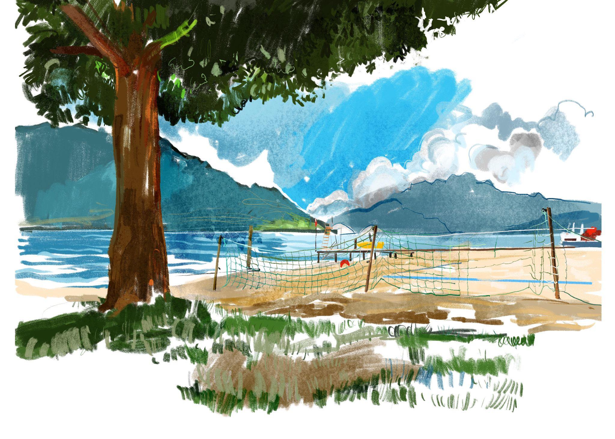 The beauty of drawing on the ipad is that you have a fully equipped art studio wherever you might be! On the train, tram, boat or restaurant it’s easy to capture the moment on the ipad and not be burdened with cumbersome drawing blocks, paints, easels, etc.