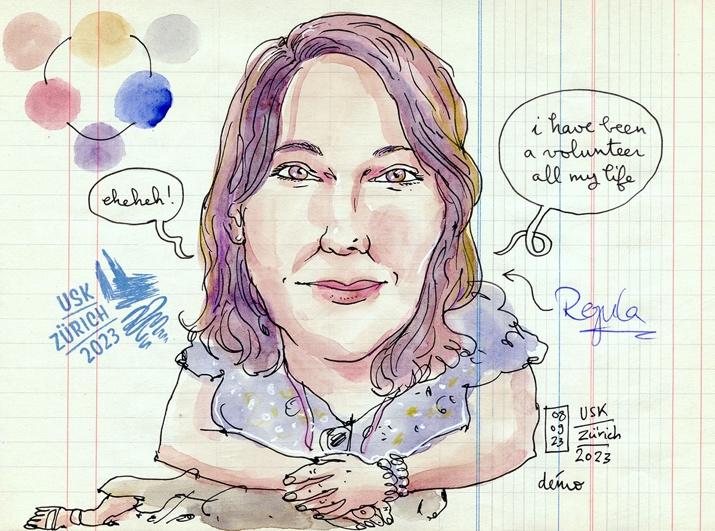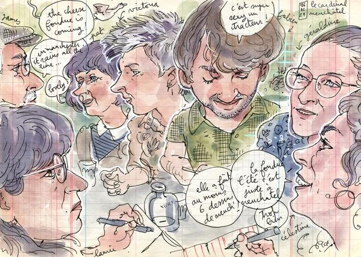 In this workshop, we will explore how to create some quick and alive portraits with line and watercolor using a very limited palette and quoting part of the conversation, to catch the encounter.